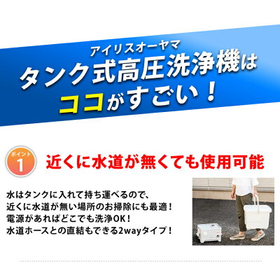 【タンク式高圧洗浄機 SBT-512N】 近くに水道が(蛇口)がなくても使えるタンク式です。
