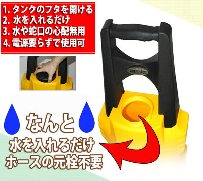 商品名 充電式高圧洗浄機 タンク式 持ち運び便利 使用方法 ■商品詳細 最大容量:32L 電圧:12V ホース:高圧式6Mのロングタイプ 重量:約5kg 電源:ACアダプター&シガーソケット 付属品:高圧ホース、ガン、ブラシ、その他 【充電時間】:3時間〜4時間 【満充電時による使用時間】:水圧にもよりますが30分〜1時間 【タンク式&充電式の利点】 1.電源要らずでどこでも&いつでも使用可能2.持ち運び便利で水道水の蛇口が無くても使用可能3.移動しながら高圧洗浄4.お庭や畑など広い場所でもくまなく水をまくことができます。